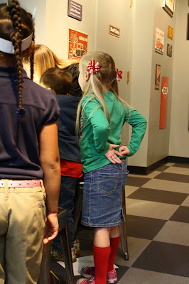 Madeline loves to draw and color more than any child I know. She waited so patiently for her turn at this tracing station when a girl who had not patiently waited swooped in and sat down. Madeline was crushed. I told her to tell the girl that it was her turn. My shy girl said nothing, but the girl had heard me and moved on. Teaching Madeline to stand up for herself will be hard because I have the same problem, but we are working on it!